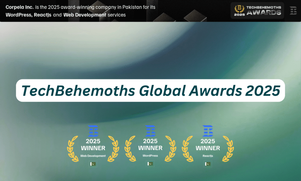 Corpela Inc, a Pakistan based software and technology solutions company, has achieved a major international milestone by winning three prestigious awards at the TechBehemoths Global Excellence Awards 2025. The company was officially recognized as a Winner in the categories of WordPress Development, ReactJS Development, and Web Development, marking a significant achievement for both Corpela and Pakistan’s rapidly growing technology sector.